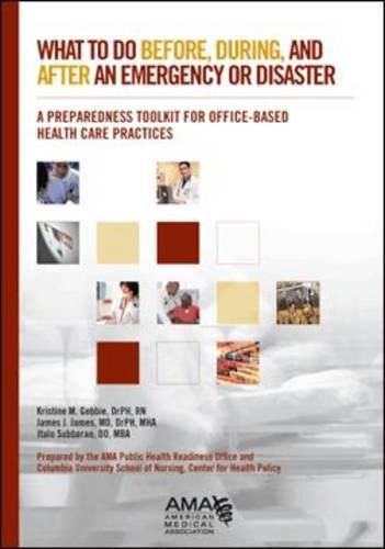 When disaster strikes, the ability to keep providing clinical services during and after the event depends on being prepared. With an emergency plan in place and the right information to make rapid decisions, you could save both your health care business and the lives of your patients. TheWhat to do Before, During, and After an Emergency or Disaster: A Preparedness Toolkit for Office-based Health Care Practicesgives health care professionals the tools they need to be ready for the unexpected.To help you plan for the worst of events, this invaluable resource provides essential information on how to: " assess likely hazards in your community " identify the challenges you may encounter during and after an emergency " define the roles and responsibilities critical to communication " develop emergency response plans